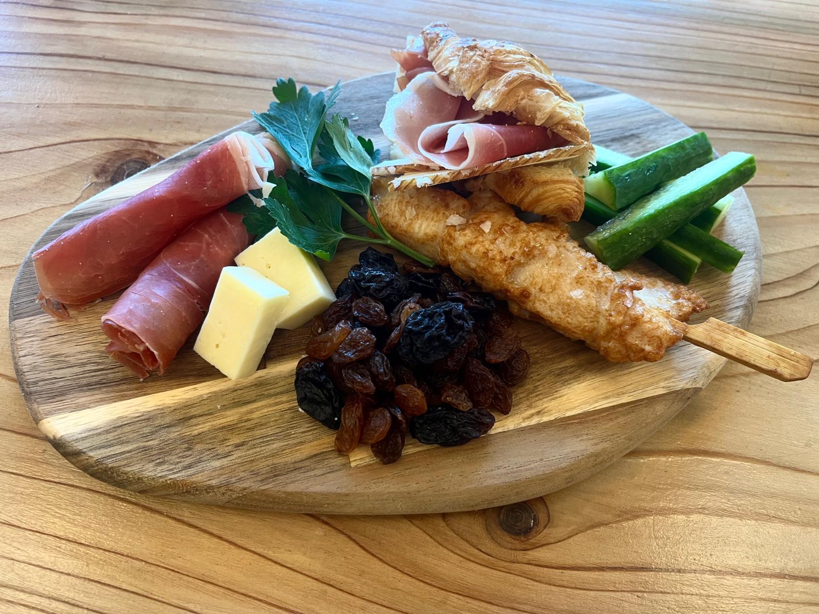 Leverans på plankor : Menyn kan även levereras på våra vackra ekologiska träplankor, där vi tar hand om presentationen, dekorerar med färsk frukt och grönsaker och levererar direkt till bordet där du vill att maten ska stå.